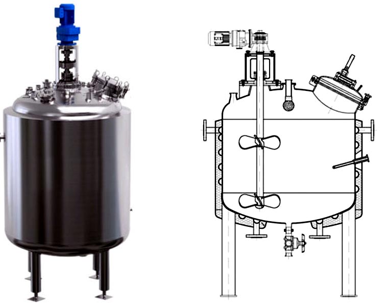 304、316L材料制作,以及設置加熱、冷卻裝置,以滿足不同的工藝和生產(chǎn)需要.加熱形式有夾套加熱、盤管加熱,該設備結(jié)構(gòu)合理、工藝先進