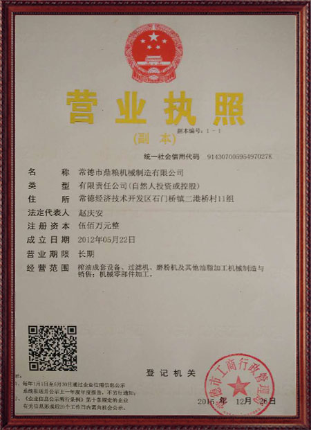 企業(yè)堅持“質(zhì)量、口碑就是我們的生命”的原則,嚴格執(zhí)行質(zhì)量標準檢驗體系。生產(chǎn)的"鼎糧"牌系列產(chǎn)品,產(chǎn)品質(zhì)量優(yōu),性價比高,深受廣大新老客戶的青睞,通過了各級部門的鑒定認可,立式、臥式液壓榨油機均榮獲農(nóng)機推廣證。